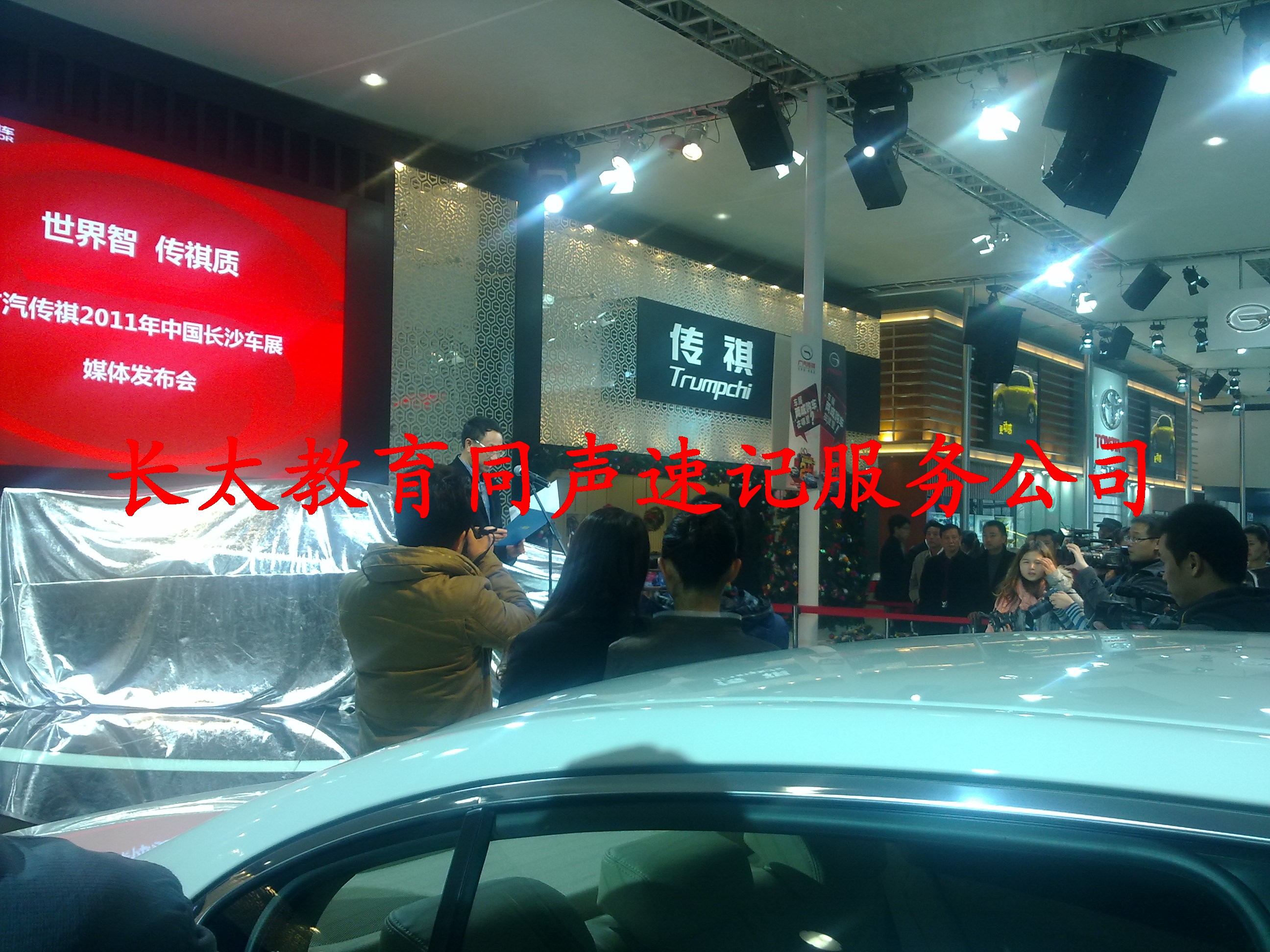 长沙速录公司讯 2011年12月15日,长沙第七届国际车展在国际会展中心举行,长沙速记的高级速录师袁普应邀为广汽集团传祺做速记服务,本次媒体群访主访者为徐育林,徐育林为广汽集团副总经理,群访媒体问为潇湘晨报,长沙晚报,三湘都市报,湖南卫视。