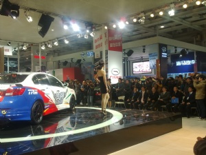 (香车美女,本次广汽传祺主推车型为赛车传祺,它完全跟赛车动力系统一样,安全系数也一致)